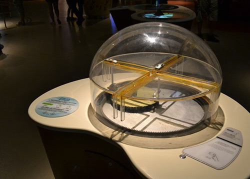 展品在一個展臺上設(shè)置大小兩個圓形,小圓的半徑為大圓半徑的一半切且與大圓內(nèi)切。其中小圓可以由電機驅(qū)動沿著大圓內(nèi)部滾動。在小圓的圓周上固定一只立桿,立桿上設(shè)立一只小熊的模型。