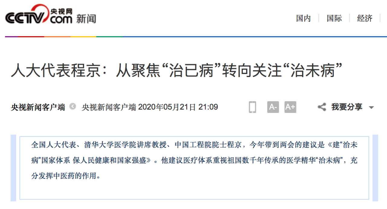 今年兩會(huì),他提議系統(tǒng)性重視“治未病” ,倡導(dǎo)出臺(tái)全民健康保障法。同時(shí),程京院士還建議關(guān)注一“老”一“小”,推出新生兒出生缺陷管控及老年慢病防控的針對(duì)性政策,為全民健康體系提供保障。
